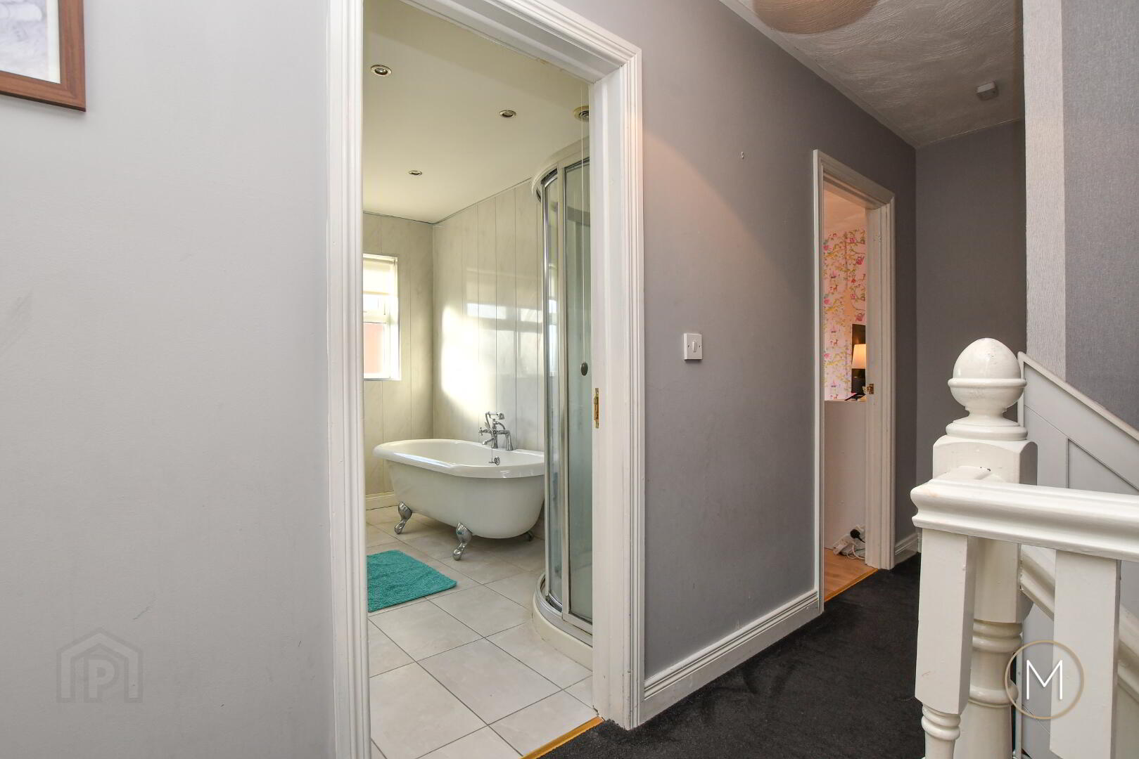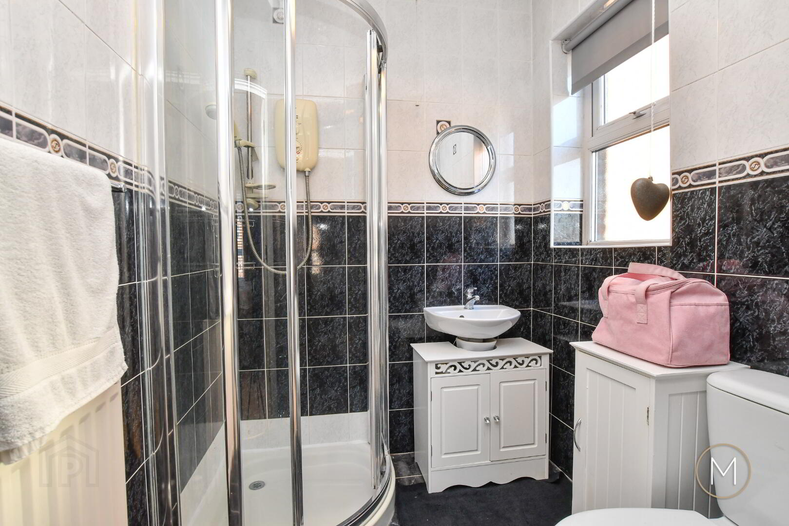 Upstairs, the property continues to impress with four well-proportioned double bedrooms. The master bedroom enjoys the added luxury of an ensuite shower room, while the main family bathroom is finished to a high standard, featuring a contemporary white suite with a striking freestanding bath and separate shower cubicle.