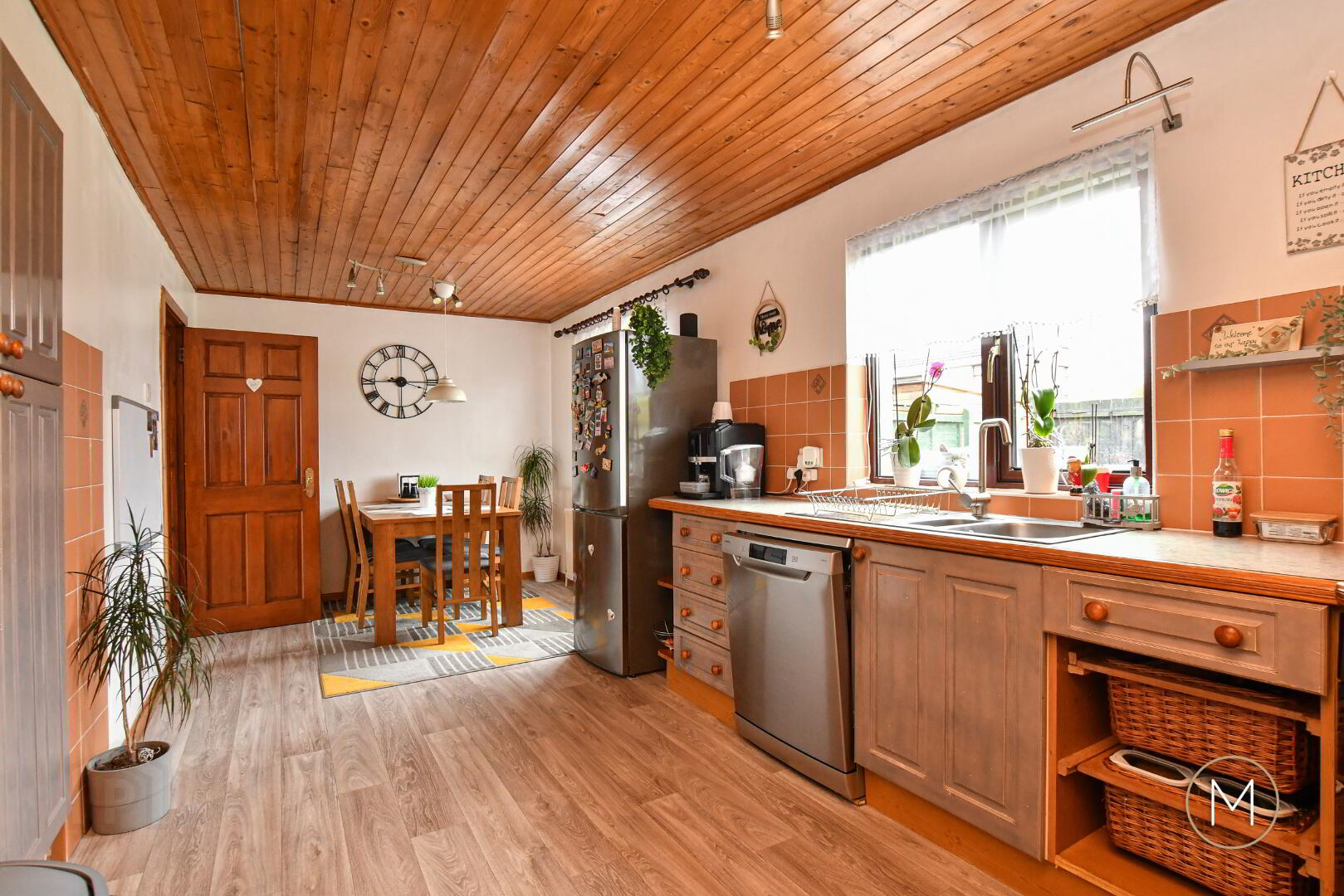 Upon entering, you are welcomed by a bright and inviting entrance hallway, complete with practical walk-in storage. The spacious living room is flooded with natural light and features a charming fireplace with an open fire—ideal for cosy evenings at home. To the rear, the property boasts a generous open-plan kitchen and dining area, providing an excellent space for everyday living and entertaining alike.