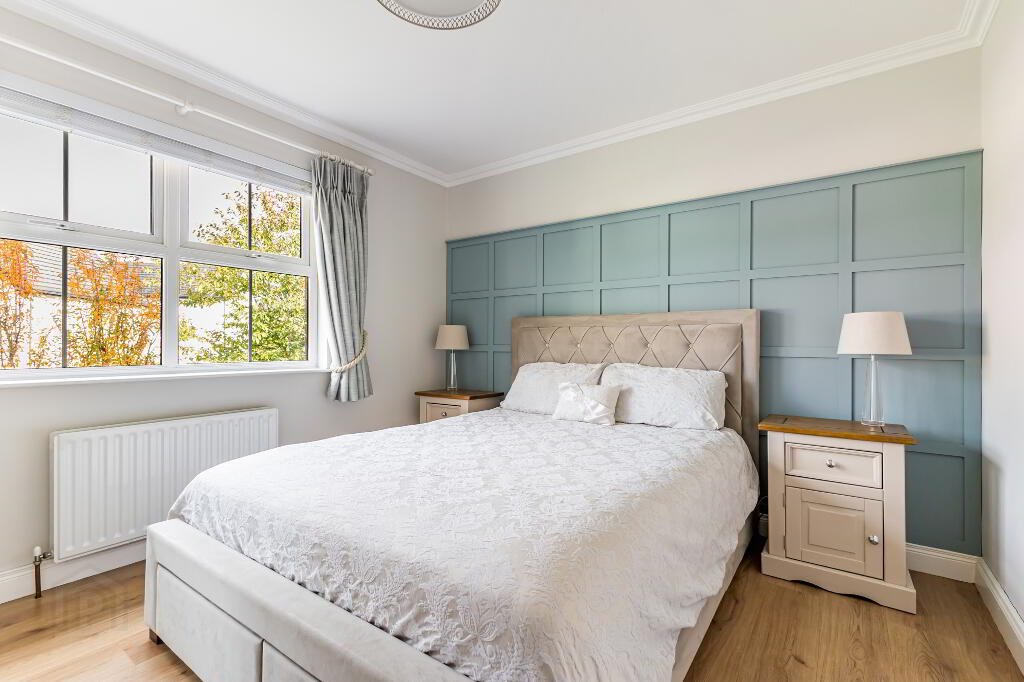 Each bedroom is presented in calm, neutral tones, with quality flooring and decorative touches throughout. Tasteful wood panelling adds a touch of character and warmth to several rooms, blending beautifully with the home’s overall minimalist yet inviting style.