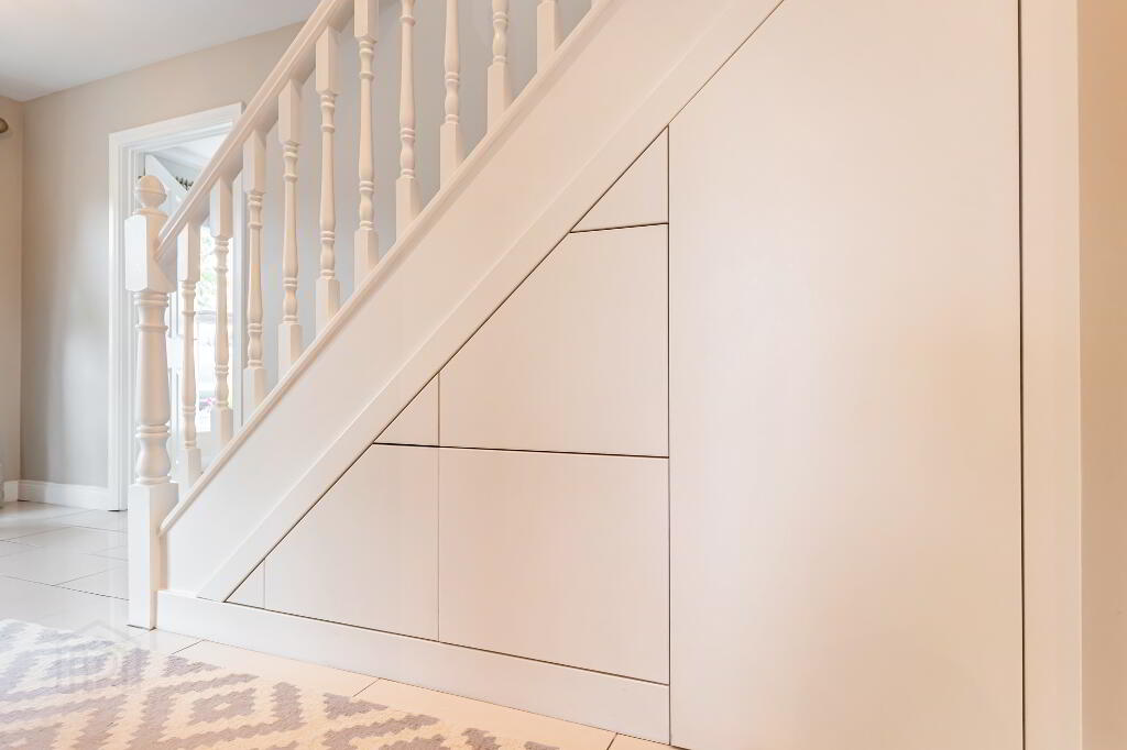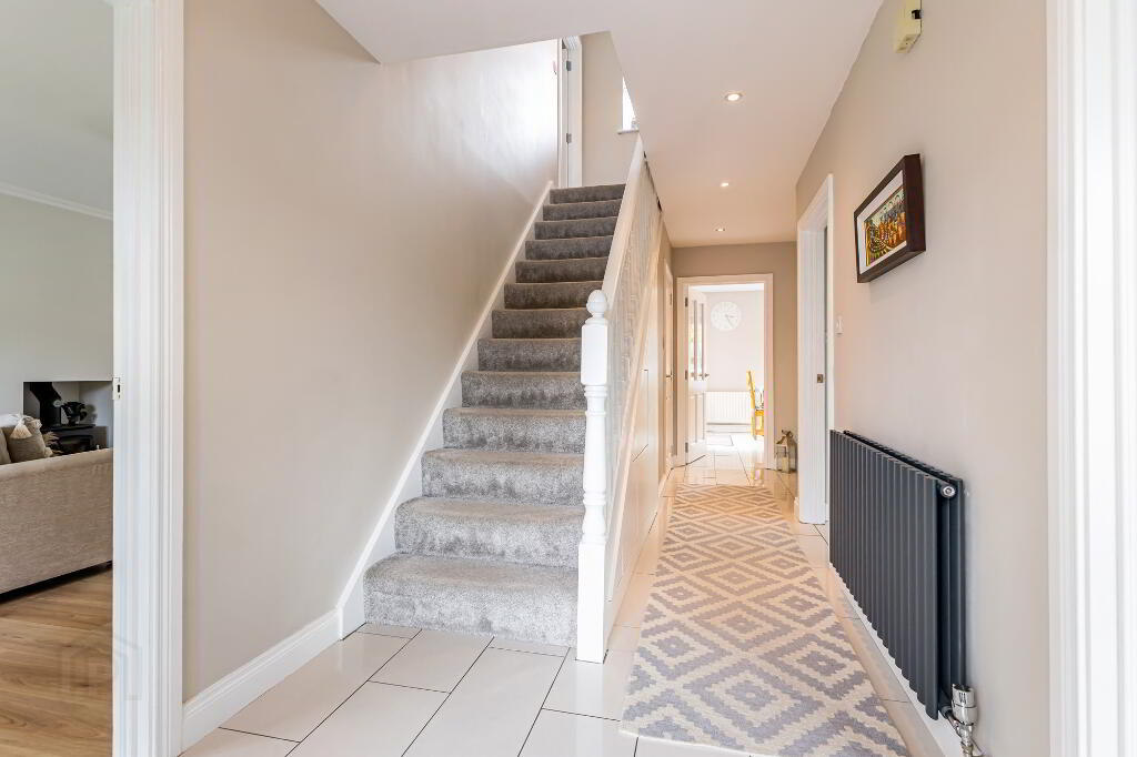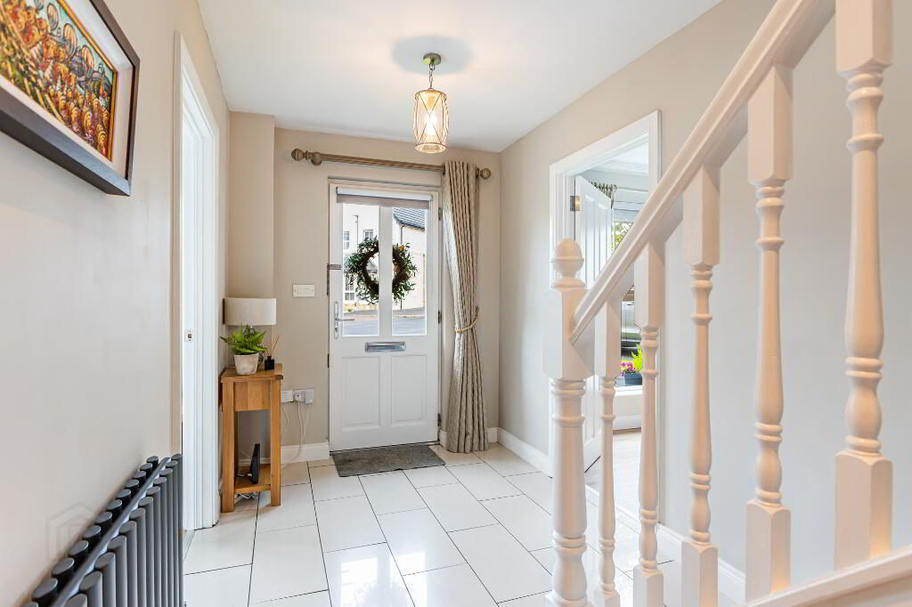 From the moment you step through the door, 132 Bush Manor impresses with its contemporary design and impeccable finish. The tiled entrance hallway sets the tone for the rest of the home, combining practicality and style, with a cleverly designed integrated understairs storage system — perfect for keeping family life tidy and organised.