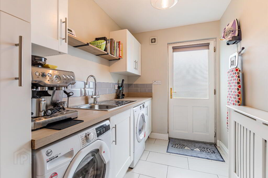 Completing the ground floor is a stunningly finished utility room with additional cabinetry, its own external door, and a convenient downstairs WC — all reflecting the thoughtful, family-focused layout throughout.