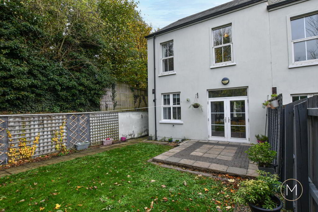 Private and enclosed garden with separate paved patio and lawn areas; exterior lighting; outside water tap
