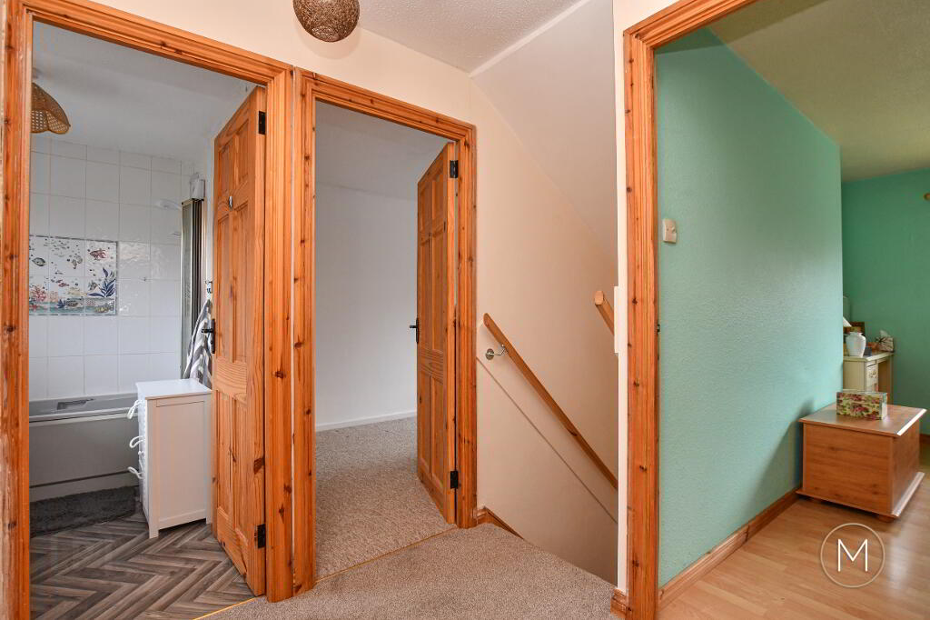 On the first floor, the property boasts three well-proportioned bedrooms, two of which benefit from built-in storage, along with a coloured bathroom suite. Additional features include oil-fired central heating and double-glazed windows throughout, ensuring comfort and efficiency all year round.