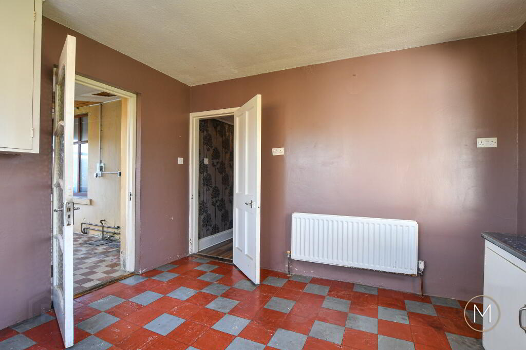 Fitted kitchen comprising of a good range of high and low level units; plumbed for washing machine; space for cooker; single drainer stainless steel sink unit; tiled floor