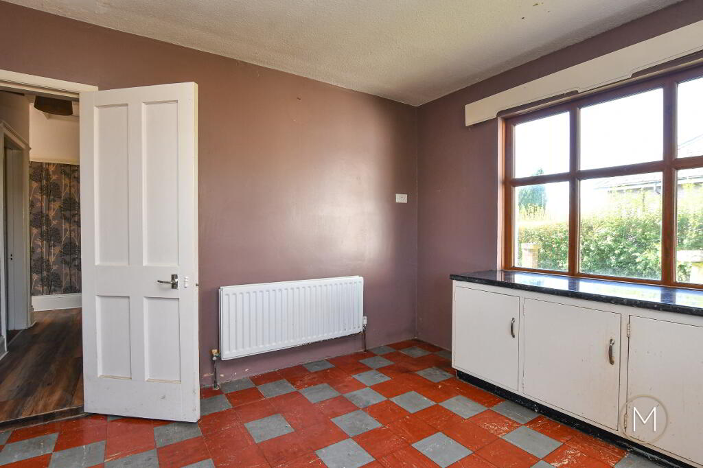 Internally, the bungalow is well-proportioned and thoughtfully laid out. The bright and welcoming living room provides a comfortable space to relax with a feature fireplace, a separate dining room/family room, while the kitchen and dining areas offer excellent potential for modernisation or open-plan redesign. Each of the three bedrooms is generously sized, making this an adaptable home suited to a variety of needs — from growing families to those requiring a home office or guest accommodation.