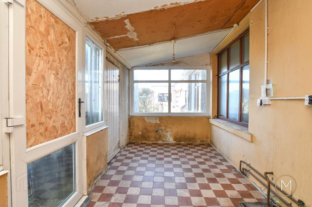 Tiled floor; PVC door to rear; access to coal shed; light and power