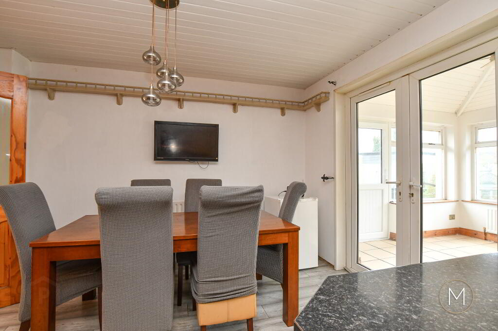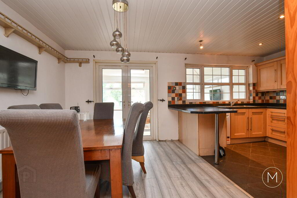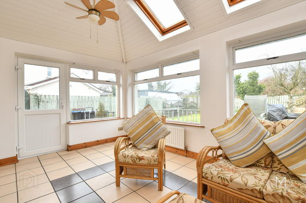To the rear, the property truly comes into its own with a superb open-plan kitchen and dining area, perfect for everyday living and entertaining alike. This space flows seamlessly into an impressive sunroom, boasting a striking vaulted ceiling and offering a wonderful outlook over the rear garden—an ideal setting for relaxing or hosting guests.
