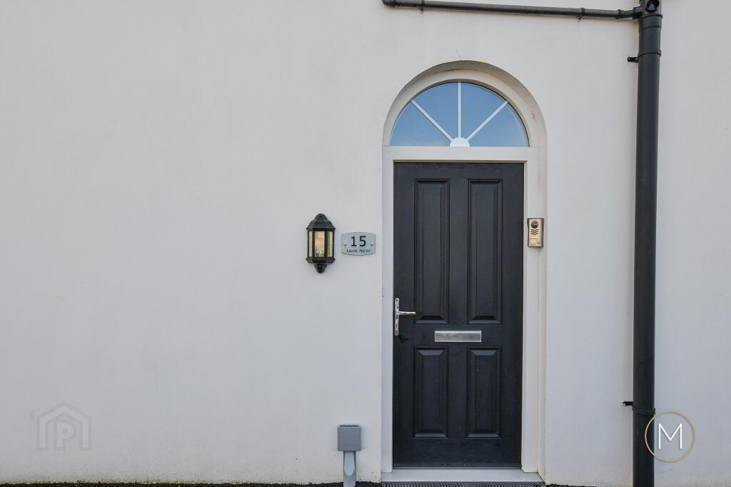 Communal gardens bordered by hedging; courtyard style car parking with two spaces; exterior lighting