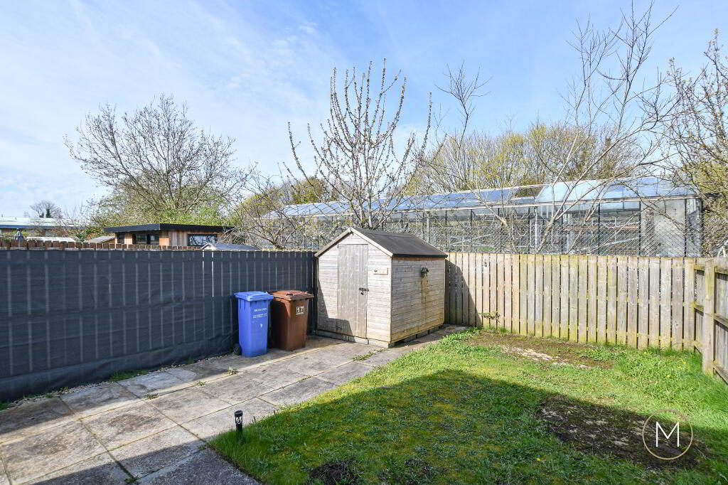 Private and enclosed rear garden with paved patio and lawn area; outside water tap; exterior lighting