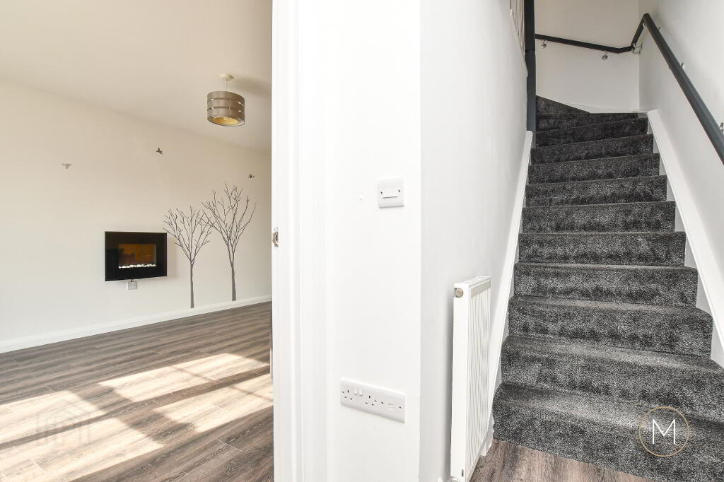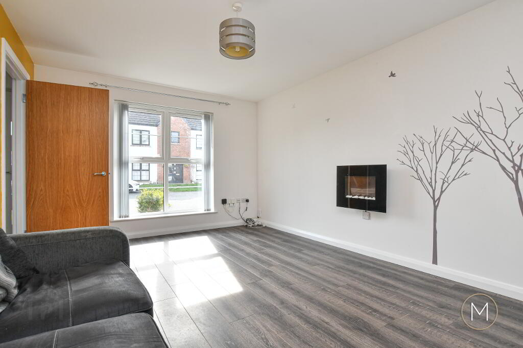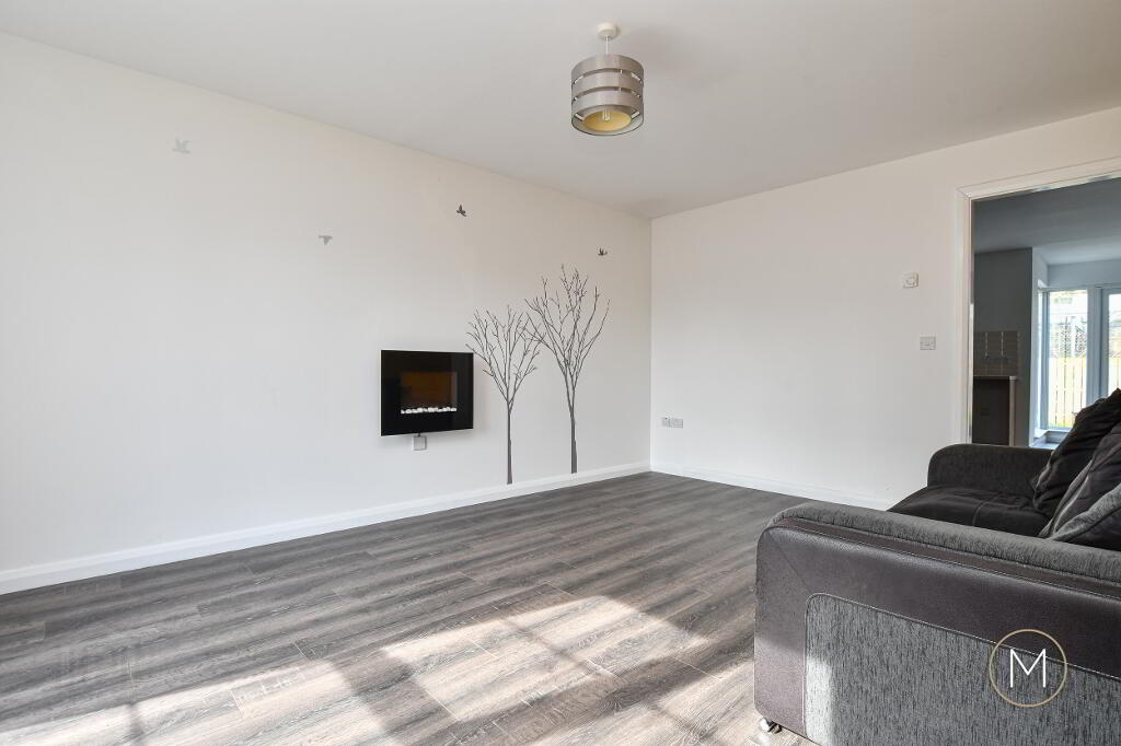 Upon entering, you are greeted by a bright and welcoming entrance hallway that sets the tone for the rest of the home. The spacious living room is flooded with natural light and features a striking wall-hung electric fire, creating a warm and contemporary focal point.