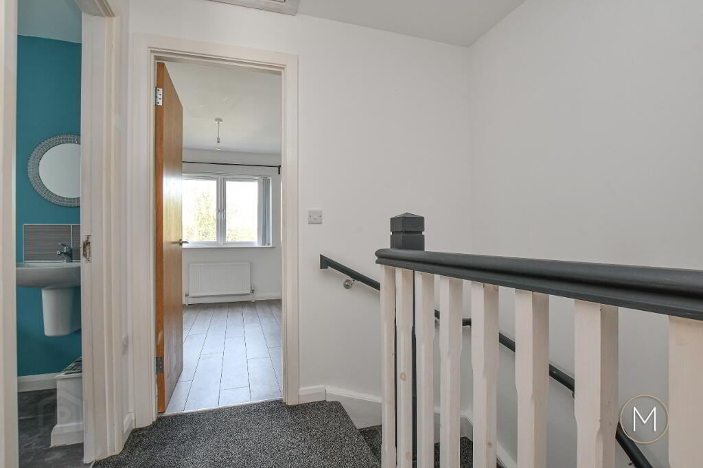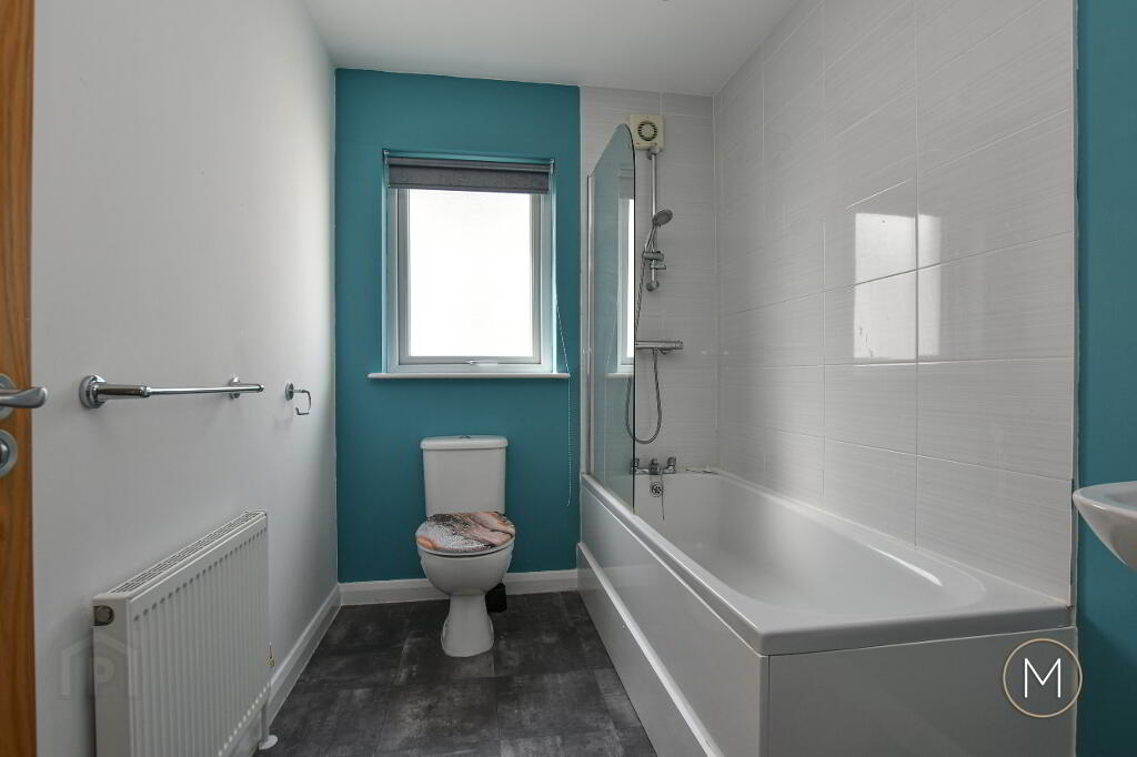 Upstairs, the property offers three well-proportioned bedrooms. The master bedroom benefits from a generous walk-in wardrobe, with plumbing already in place to easily convert this space into an ensuite bathroom if desired. The remaining bedrooms are ideal for family use, guests, or home working. The main family bathroom is finished in a sleek, contemporary white suite.