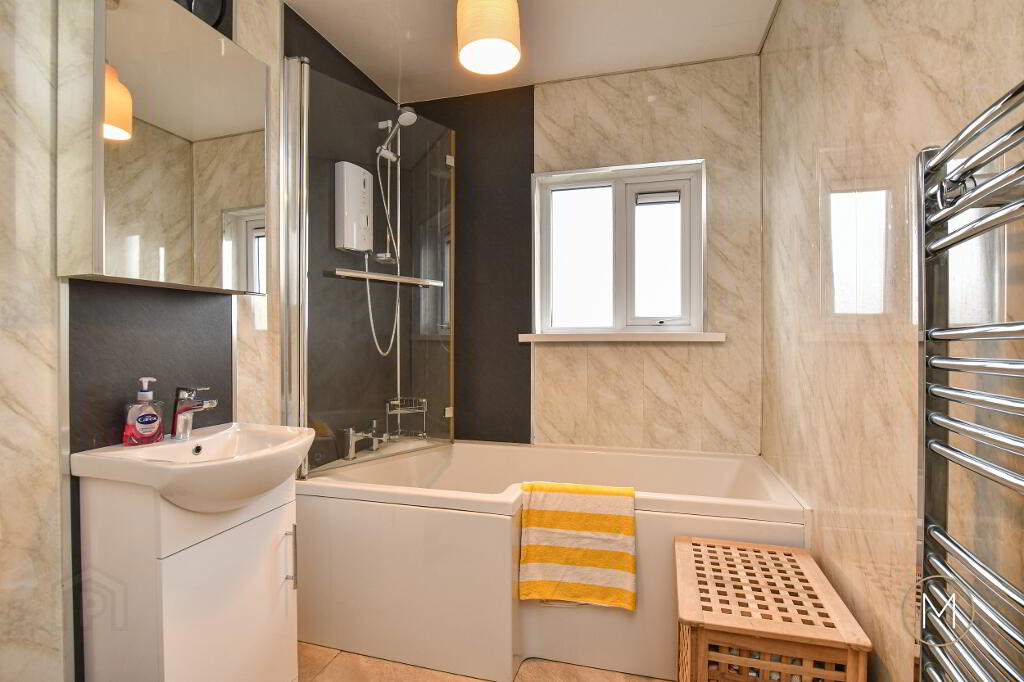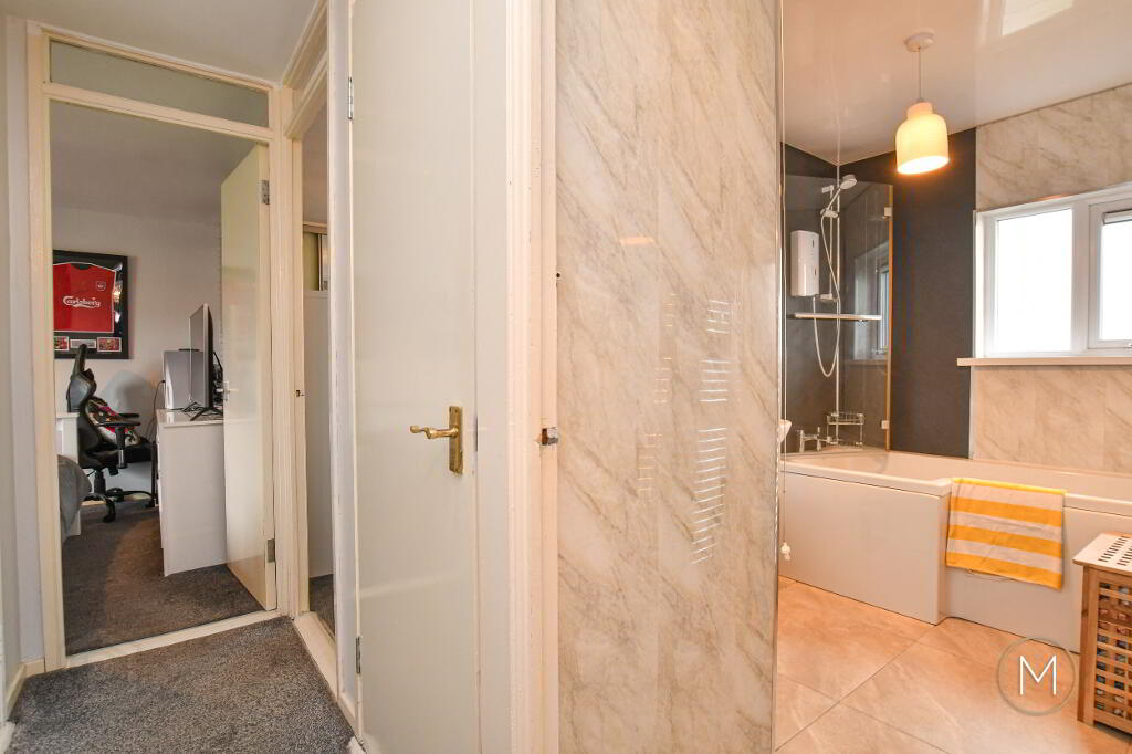 Upstairs, the property continues to impress with three well-proportioned double bedrooms, offering flexibility for families, guests, or those working from home. A modern white family bathroom suite completes the first floor, finished to a high standard.