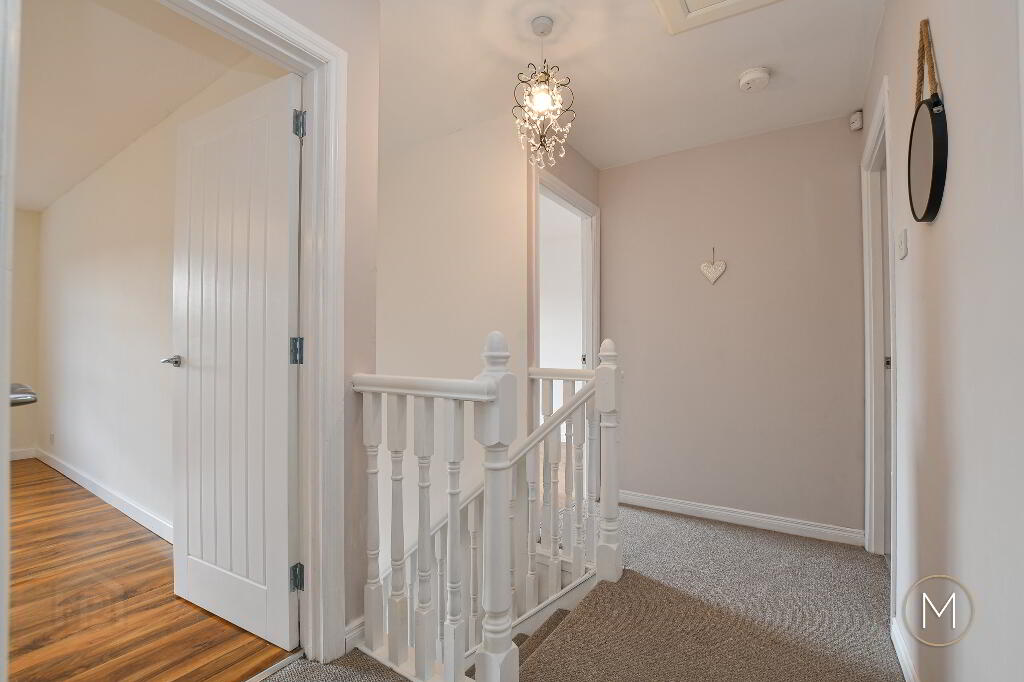 Moving to the first floor there are four well-proportioned bedrooms with the master boasting an ensuite shower room. The main family bathroom is offered in a contemporary white suite with bath and separate shower.